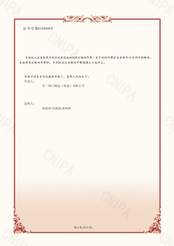 【概要描述】經(jīng)過我司不懈努力,于2023年8月1日取得一種帶可拆卸防銹內(nèi)置濾網(wǎng)的低溫蝶閥的專利。